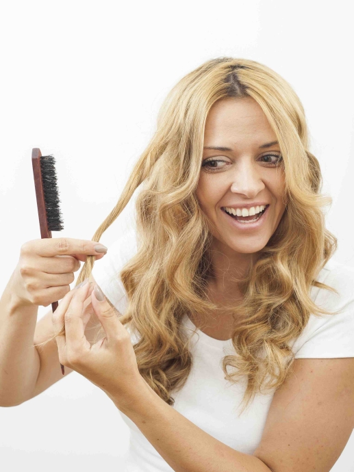 Krok trzeci: Delikatnie rozczesz loki grzebieniem lub samymi palcami. Następnie chwyć poszczególne pasma i modeluj ich skręt, aby uzyskać efekt naturalnych fal. Na koniec spryskaj włosy niewielką ilością lakieru do włosów.