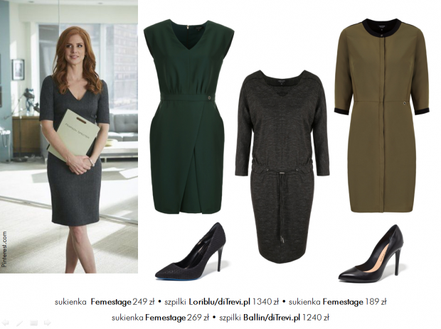 Znakiem rozpoznawczym wszystkich pań były niebotyczne szpilki, noszone z gracją,  bez względu na ilość spędzanych w biurze godzin. I choć kostiumograf serialu zadbał by nawet asystentki prawników chodziły w  bluzkach Burberry, wszystkie stylizacje łączy wspólny mianownik – ponadczasowa klasyka. Poznajcie najlepsze, biurowe propozycje w wykonaniu bohaterek serialu Suits:  Donny Paulsen, Rachel Zane i Jessici Pearson.