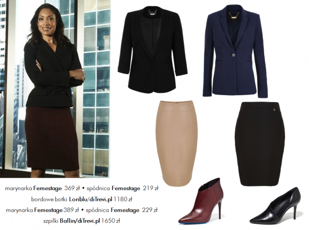 Główni bohaterowie serii – Harvey Specter i  Mike Ross, otoczeni są przez równie eleganckie współpracownice. Nienaganny wygląd zapewniały im idealnie skrojone sukienki, garnitury i klasyczne zestawy z białymi koszulami.