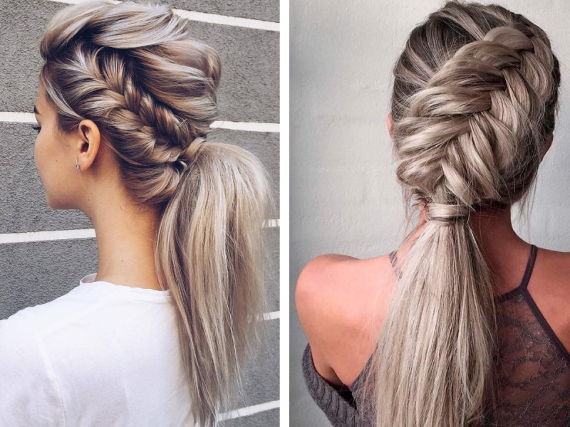 By uzyskać fryzurę nadającą się do pracy lub szkoły, stwórz boczny warkocz i zabezpiecz go gumką do włosów. Następnie weź pozostałe włosy i zrób niskiego kucyka.