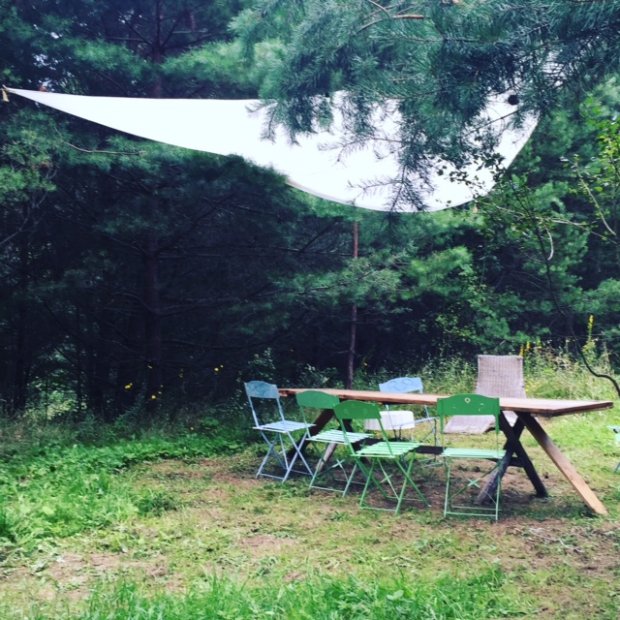 Łąka jest dziko porośnięta trawą i kwiatami i rozciąga się na malowniczych pagórkach. Tuż za nią jest zagajnik, a w nim ukryte kolejne atrakcje Camp SPA. Wzdłuż wydeptanej w lesie dróżki znajdują się drogowskazy. Wskazują saunę, kąpiele ziołowe, stanowisko do masażu. Każde ukryte jest w innym punkcie zagajnika.