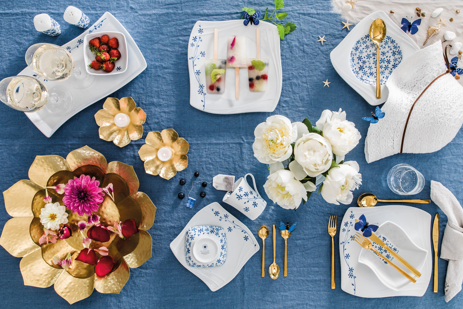 Pragniesz przemienić stół w rozkwieconą łąkę? Sięgnij po Lise autorstwa Jackie Lynd. Artystka zaprojektowała serwis z najwyższej jakości porcelany okraszony dekorem z 18-karatowego złota i delikatnym, błękitnym, kwiatowym wzorem. Wszystkie elementy zastawy wyróżniają się własnym, unikalnym motywem kwiatowym, który w subtelny sposób podkreśla finezję i elegancję serwisu. Idealne jego uzupełnienie stanowią piękne naczynia z kutego metalu w kolorze złota, które odwzorowują kształtem kwiaty zdobiące zastawę. Ten wyjątkowy serwis łączy w sobie kobiecą delikatność, wiosenną lekkość i rodzinne ciepło – symbole domowej kuchni pełnej smaków i kuszących aromatów, do których zawsze chcemy wracać.