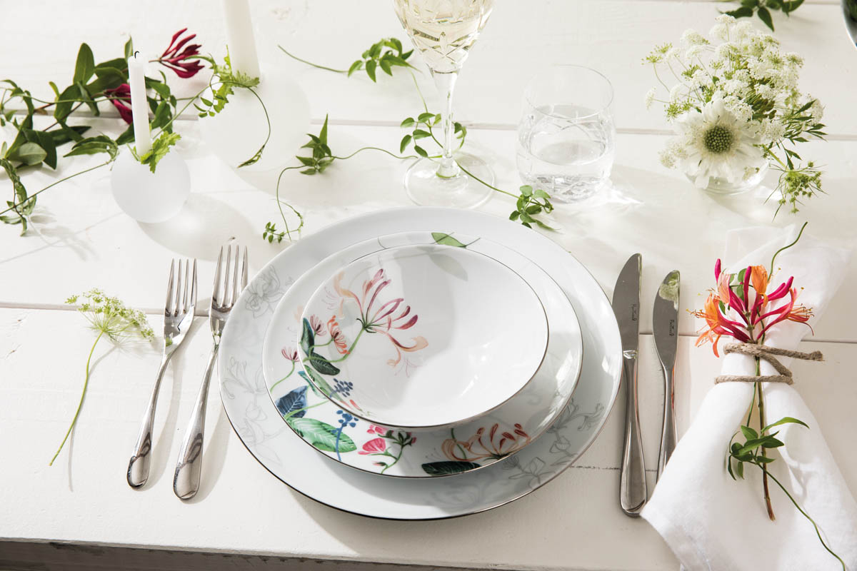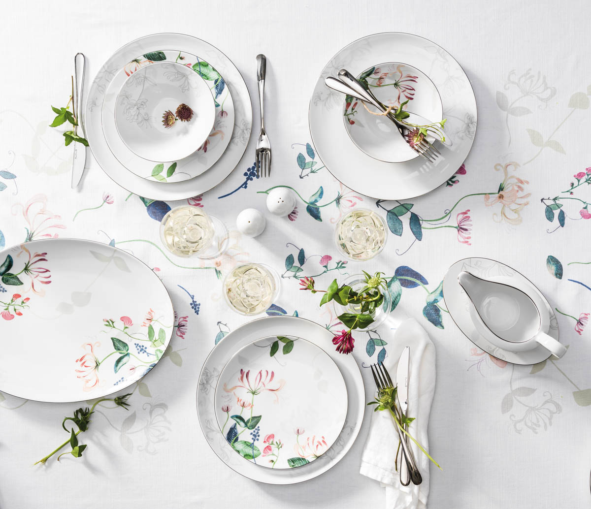 Cóż lepiej odda magię wiosennych kwiatów niż serwis stworzony przez ich miłośnika i eksperta? Magic Garden to linia autorstwa znanego, norweskiego florysty Finna Schjøll oraz projektantki Anny Handell. Widoczne na porcelanie kwiatowe elementy sprawiają, iż całość prezentuje się niezwykle finezyjnie i kolorowo, a jednocześnie elegancko. Połączenie barwnych dodatków i stonowanej bieli z szarością nadaje tej zastawie lekkości zachowując przy tym niezwykłą klasę i styl. Ta piękna propozycja jest dostępna w dwóch wersjach kolorystycznych – Magic Garden White z perłowo – grafitowym motywem stanowiąca niezwykle elegancką i subtelną bazę, do której możemy dodawać elementy porcelany Magic Garden Color z barwnym, kwiatowym dekorem.