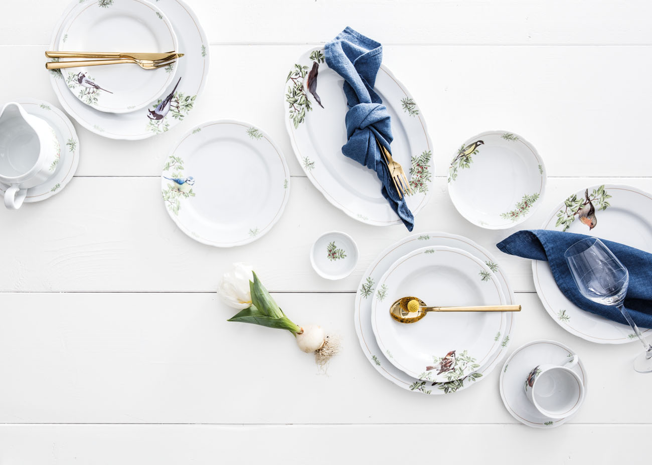 Wiosna nieodmiennie kojarzy się nam ze śpiewem ptaków. Wszechstronna i utalentowana projektantka, Anne Rooslien uwieczniła naszych skrzydlatych przyjaciół na zastawie Nordic Birds. Podczas jej tworzenia czerpała inspirację z różnorodności natury oraz magicznego świata na Gotlandii. Tak powstał wyjątkowy serwis, którego ozdobą jest dwanaście ręcznie malowanych ptaków uwiecznionych z wielkim wyczuciem i niesamowitą dbałością o szczegóły na porcelanie najwyższej jakości. Efektu dopełniają motywy gałązek wierzby, jarzębiny i wiśni, które dodają całości uroku i zapewniają oryginalną oprawę dla każdego dania zaserwowanego na zastawie.