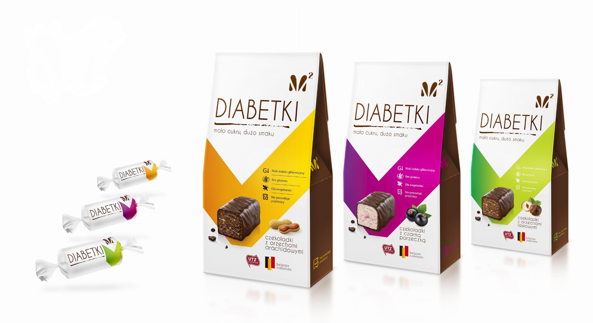 Diabetki, czekoladki bez dodatku cukru. Mix smaków, 3 x 100 g. Cena 24,99 zł